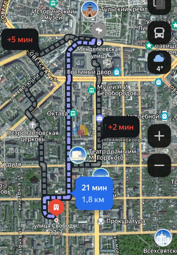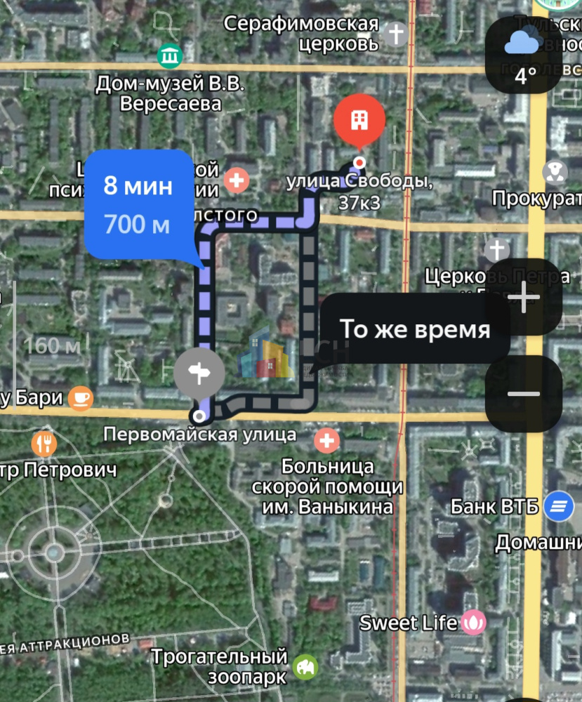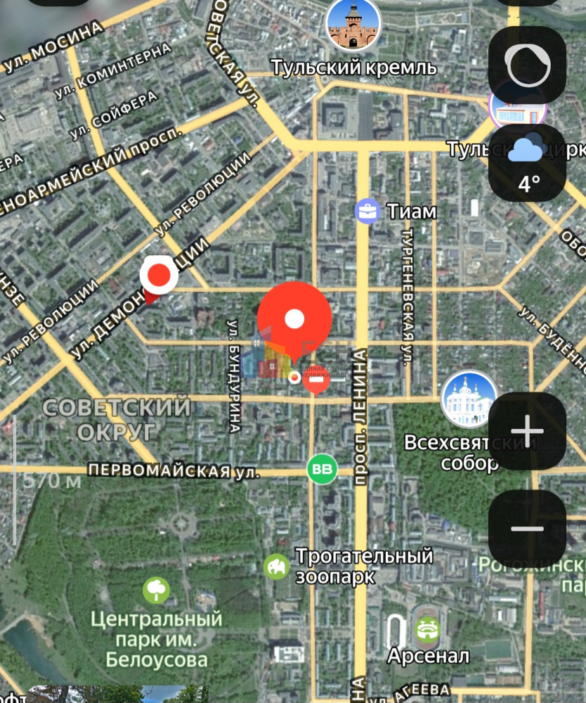Локация – центр, но тихо. Дом находится в пешей доступности от Центрального парка культуры и отдыха (8 минут пешком). Вся инфраструктура города под рукой: магазины, кафе/рестораны, школы, сады, остановки транспорта, поликлиника и больница им. Ваныкина, колледж, театр, главная улица города – пр. Ленина. До Тульского Кремля можно прогуляться 20 минут пешком.
