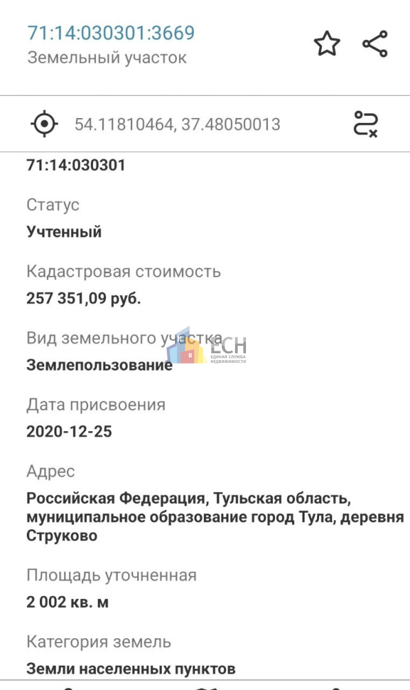 В продаже земельный участок типа поселений (ижс), Ленинский район, д. Струково. Площадь участка 20.02 сот. Коммуникации: электроснабжение.