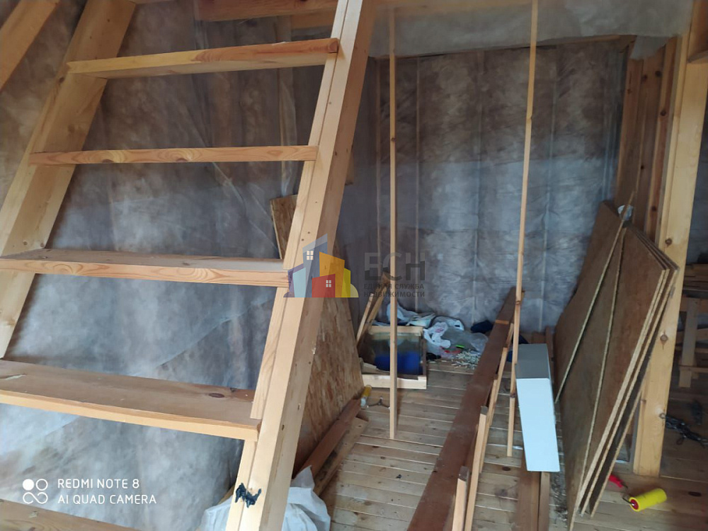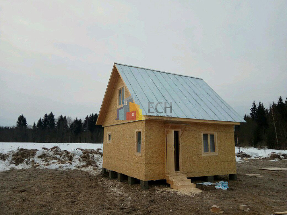 На участке имеется домик. Добротное строение, где можно спрятаться дождя, переночевать с комфортом и сложить весь дачный инвентарь.
