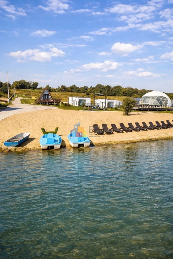 Тульская область, у водохранилища; рядом глемпинг — ориентир и маркетинговый драйвер; удобный подъезд.