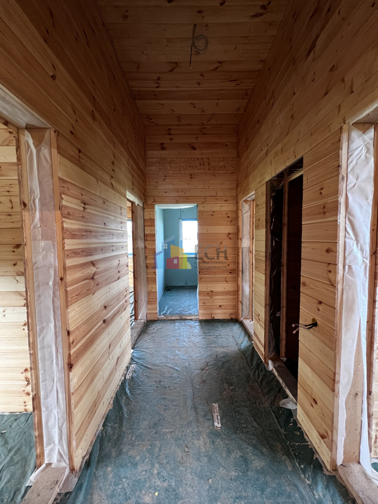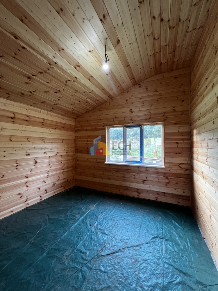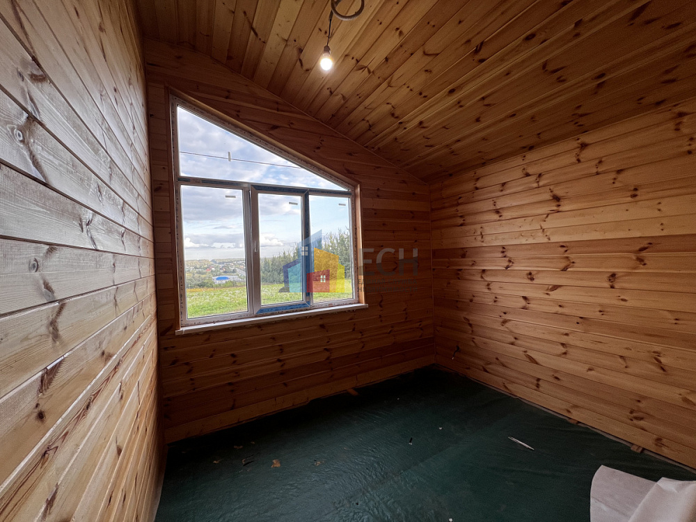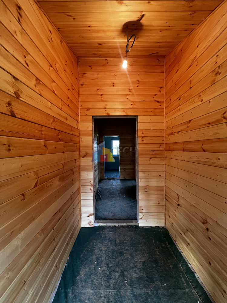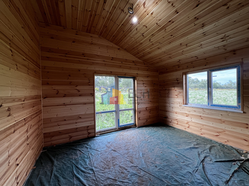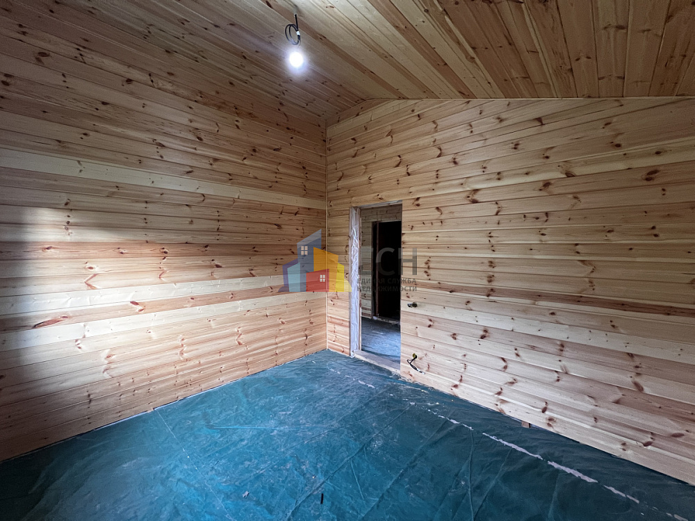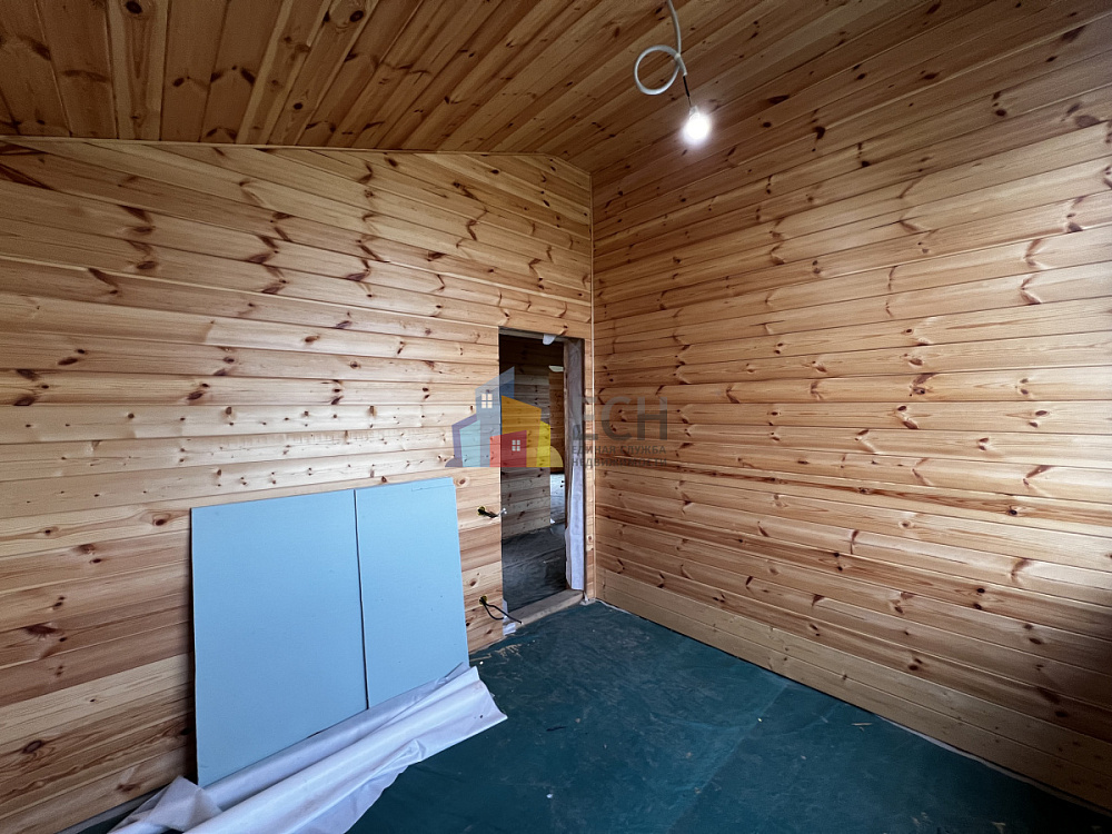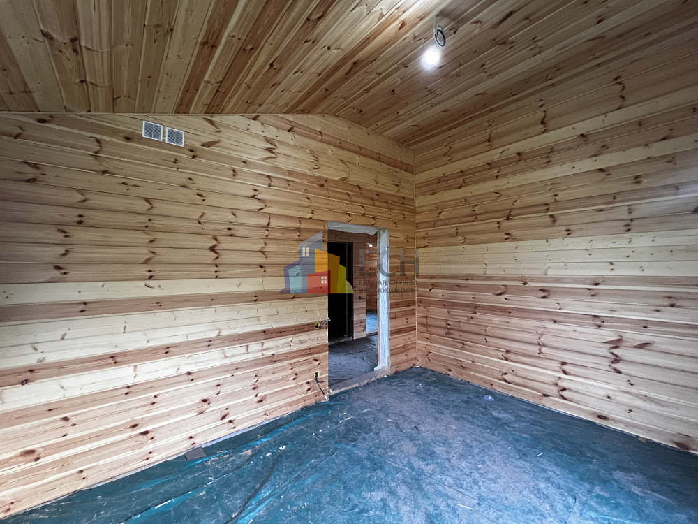 Высокие потолки, стены и потолки отделаны имитацией бруса