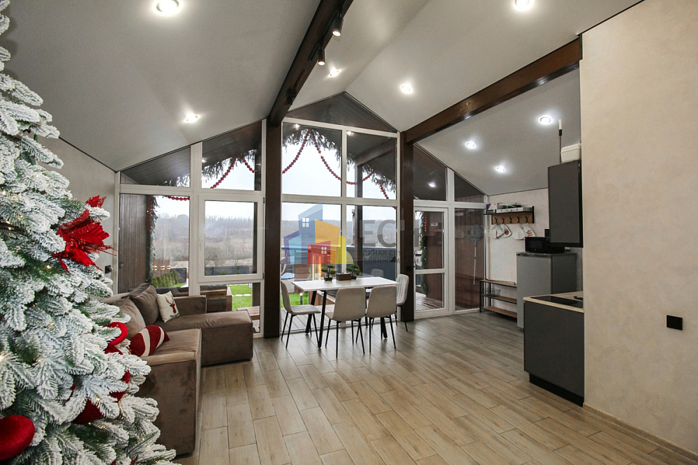 - летний кинотеатр на веранда с мягкими диваны сезонный ( летом ). В летнее время использовать веранду с мягкими диванами, столиком, освещением для романтических вечеров. Можно устраивать летний кинотеатр или петь караоке.
