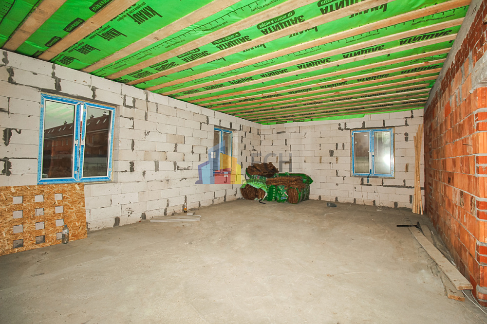 Дом построен из качественных материалов, цокольный этаж под всем домом, вся площадь 260 кв.м. С одной стороны расположен гараж, с другой просторное помещение, в котором можно организовать баню, спортзал, либо бассейн. Очень продуманная планировка, сделано все для того, чтобы было максимально задействовано жилое пространство.