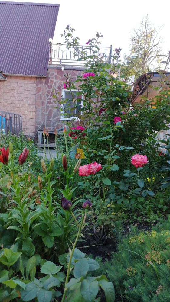 Так же в саду установлена теплица, имеются фруктово-ягодные насаждения, декоративные цветы и кустарники.