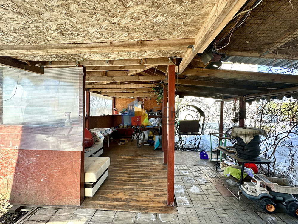 На участке расположены беседка, сарай и гараж — удобно для хранения и отдыха.
