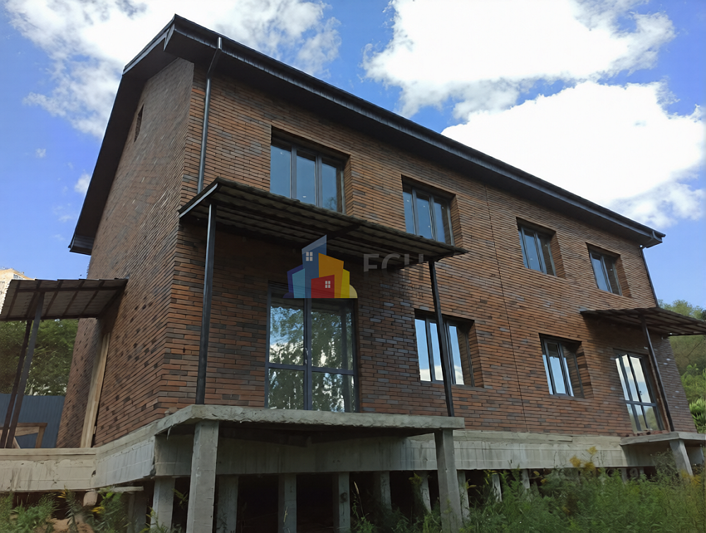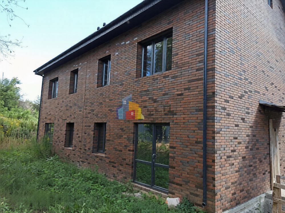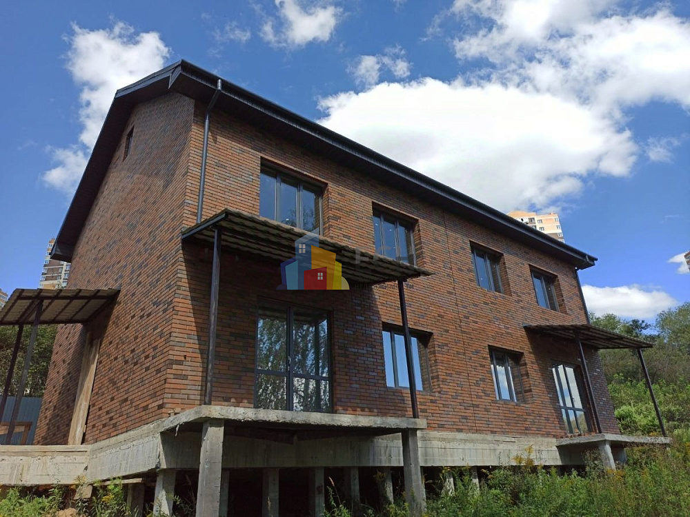 Дом построен с использованием качественных материалов: свайно‑ростверковый фундамент, облицовочный кирпич Braer (баварская кладка), металлочерепичная крыша с водосточной системой и снегозадержателями, окна Rehau, четырёхслойное утепление каменной ватой с пароизоляцией, железобетонные плиты перекрытия.